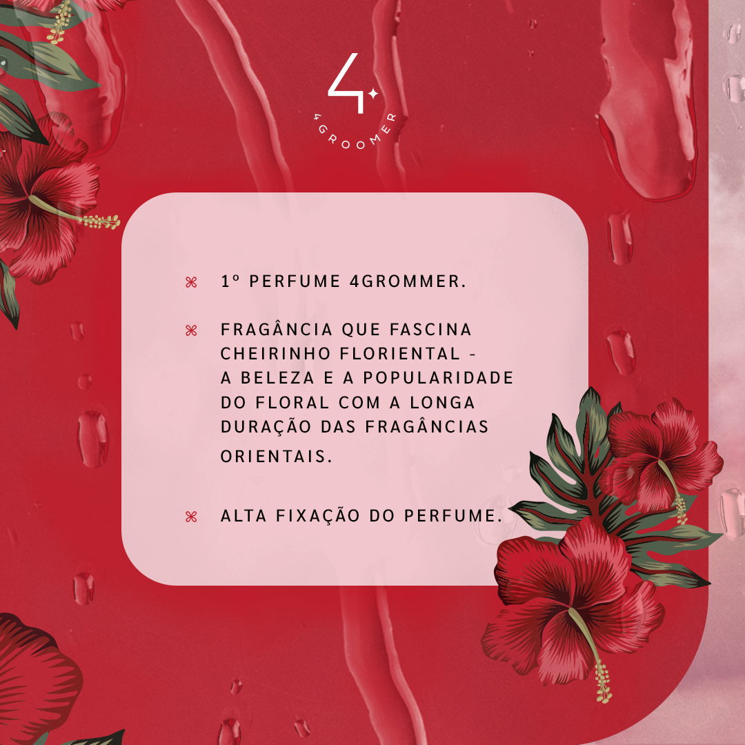 A nova fragrância da 4Groomer para cães e gatos, com acorde floriental e alta fixação. Seu cliente se destaca e o tutor sente sua dedicação.