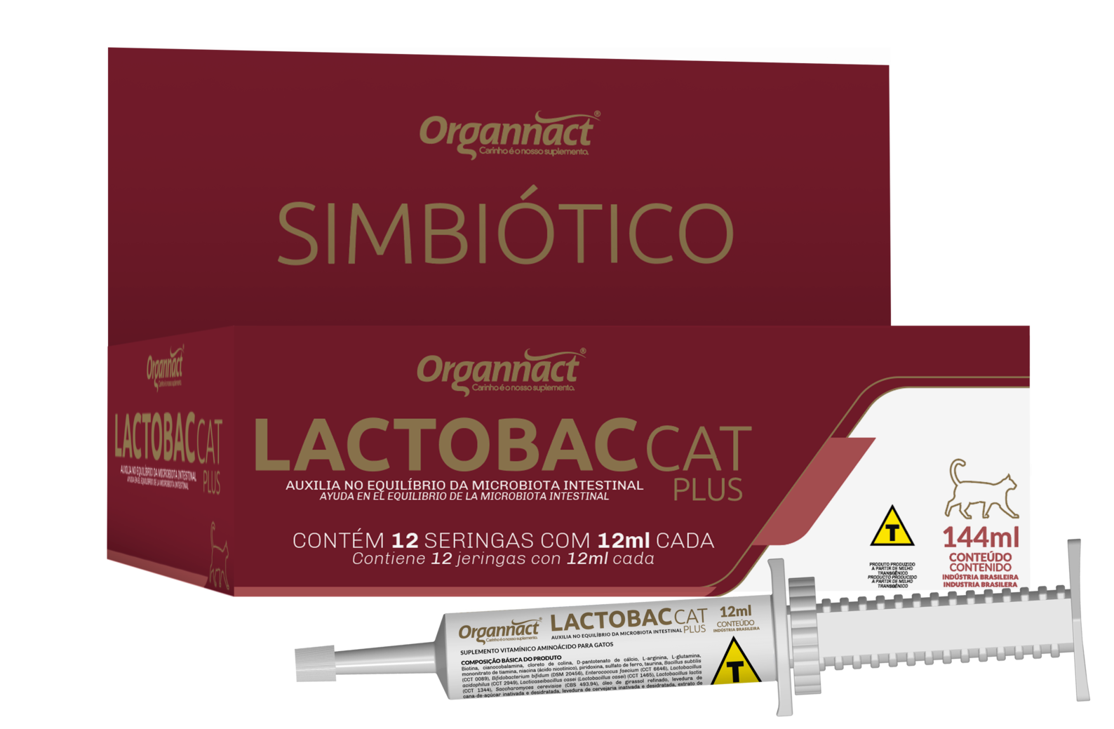 Suplemento Organnact Lactobac Cat Plus para Gatos 12ml Display 12x