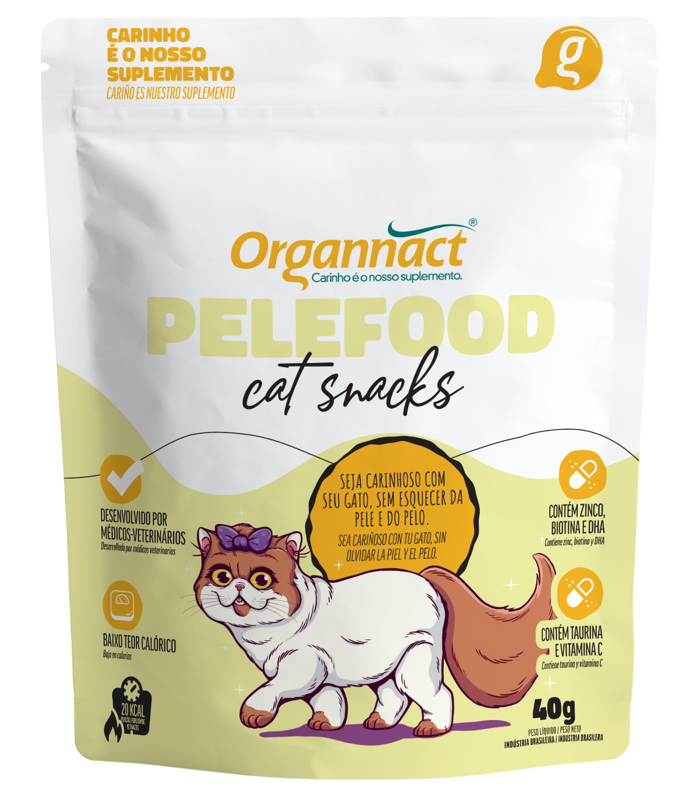 Indicado para a manutenção da pele e pelagem de gatos em qualquer fase da vida. Contém zinco, biotina e DHA.