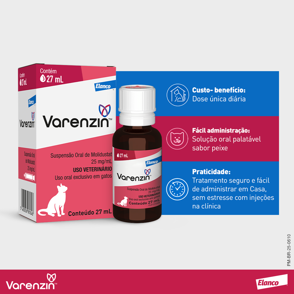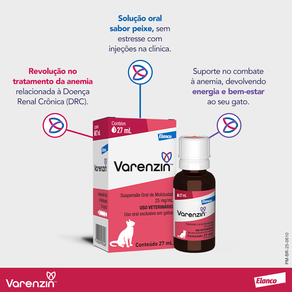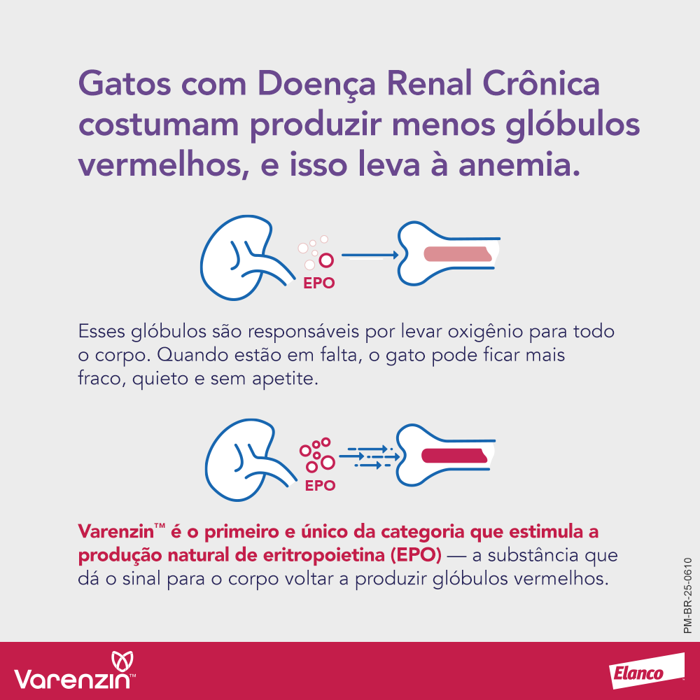 É o primeiro medicamento oral aprovado para tratar a anemia não regenerativa em gatos com DRC. Sua fórmula inovadora com molidustat atua de forma única no organismo felino, promovendo a produção natural de glóbulos vermelhos.